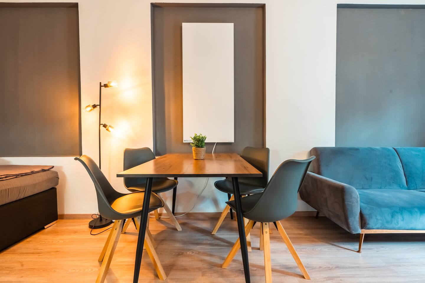 The apartment is perfect for up to three guests and offers everything for a comfortable stay. Thereโs a cozy double bed ๐๏ธ, a TV with smart TV features ๐บ, and fast Wi-Fi ๐ถ. For a third guest, thereโs a pull-out sofa bed that can also be used as a comfy sofa during the day ๐๏ธ. A spacious dining table ๐ฝ๏ธ and a fully equipped kitchen ๐ณ are available for preparing and enjoying your meals.