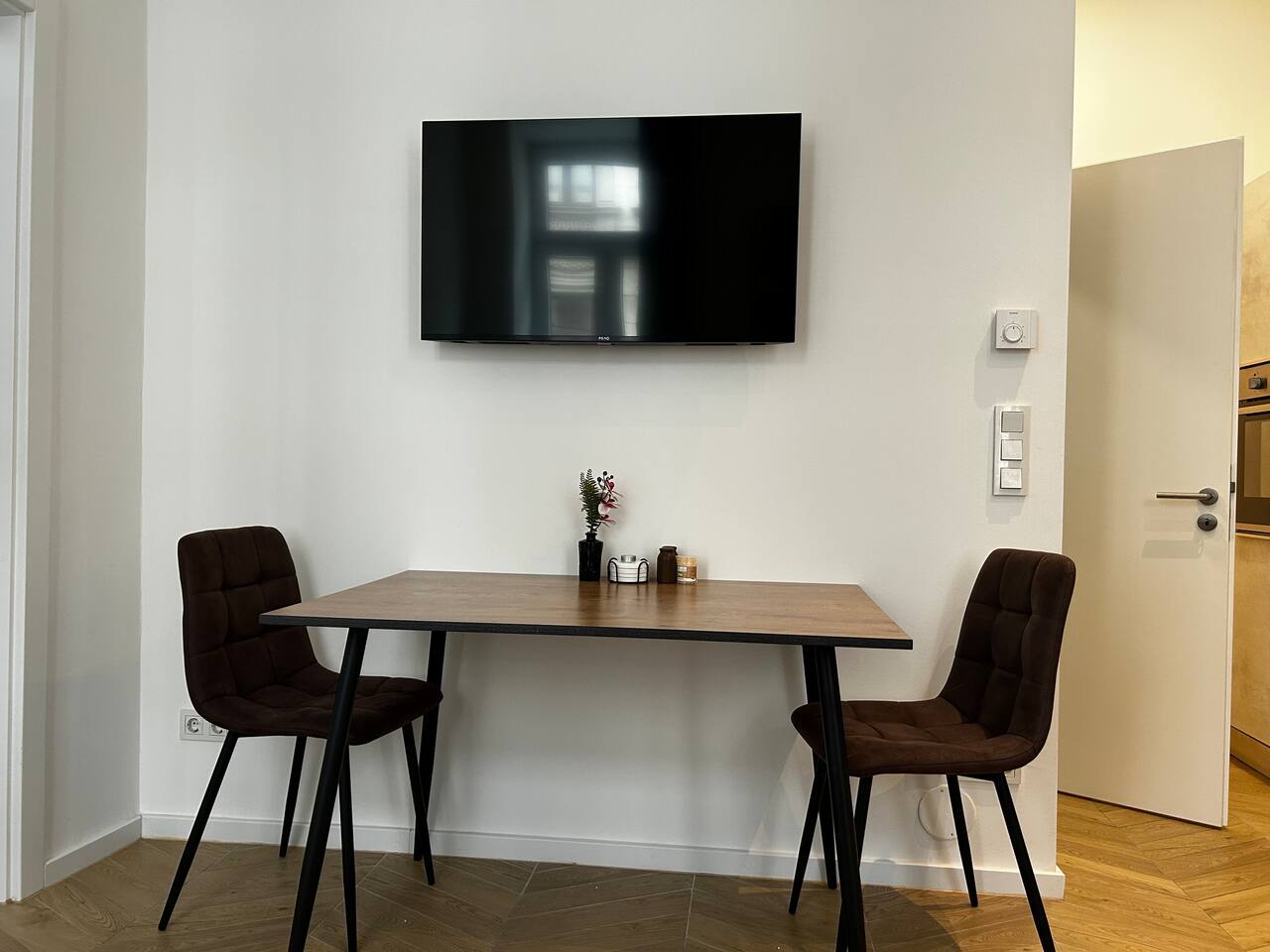 Die stilvolle Wohnung bietet im Wohnzimmer eine ausziehbare Couch für 2 Personen 🛋️, dazu TV 📺 und WLAN 📶. Im Schlafzimmer wartet ein gemütliches 160 cm Boxspringbett 🛏️ und ein kleiner Schreibtisch ✍️. Die Küche ist geräumig und mit allem Wichtigen ausgestattet 🍽️. Bad und WC sind natürlich vorhanden und nur für euch zugänglich 🚿🚽 – perfekt für euren Aufenthalt in Wien!